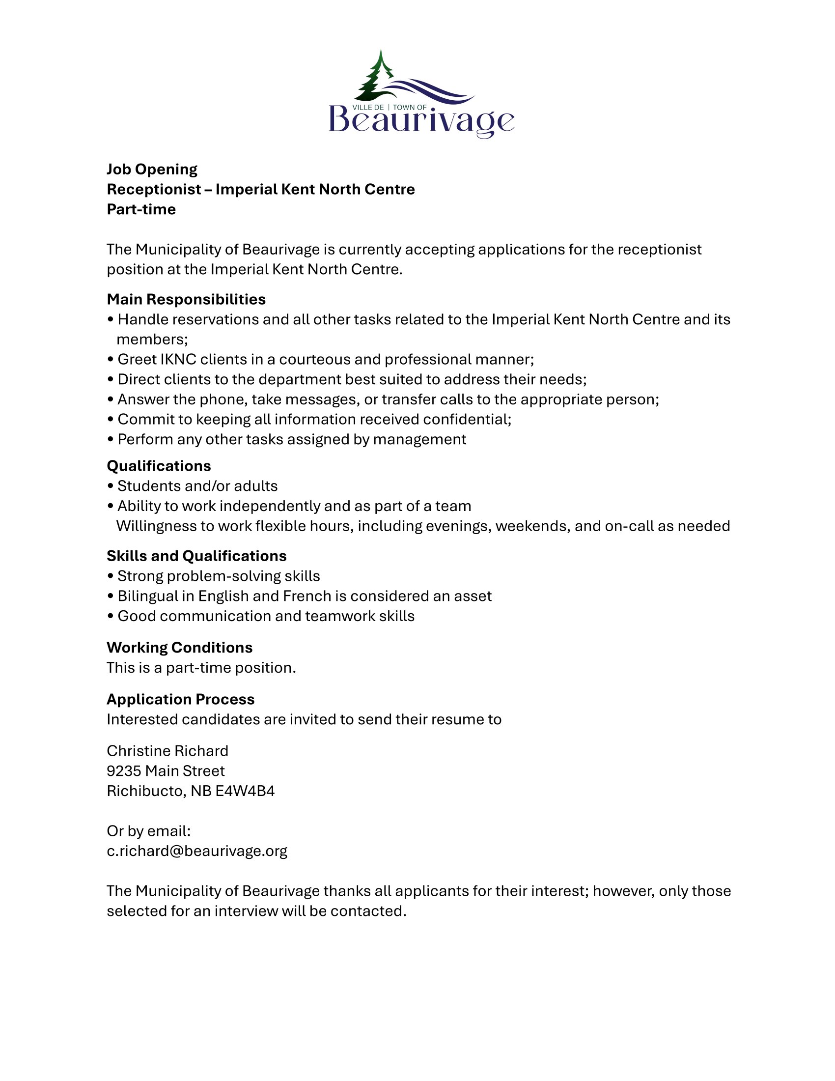 As we look toward the new year, I am sincerely grateful for the continued support, involvement, and cooperation of our community. Together, we will continue building a Beaurivage that is vibrant, welcoming, and thriving.