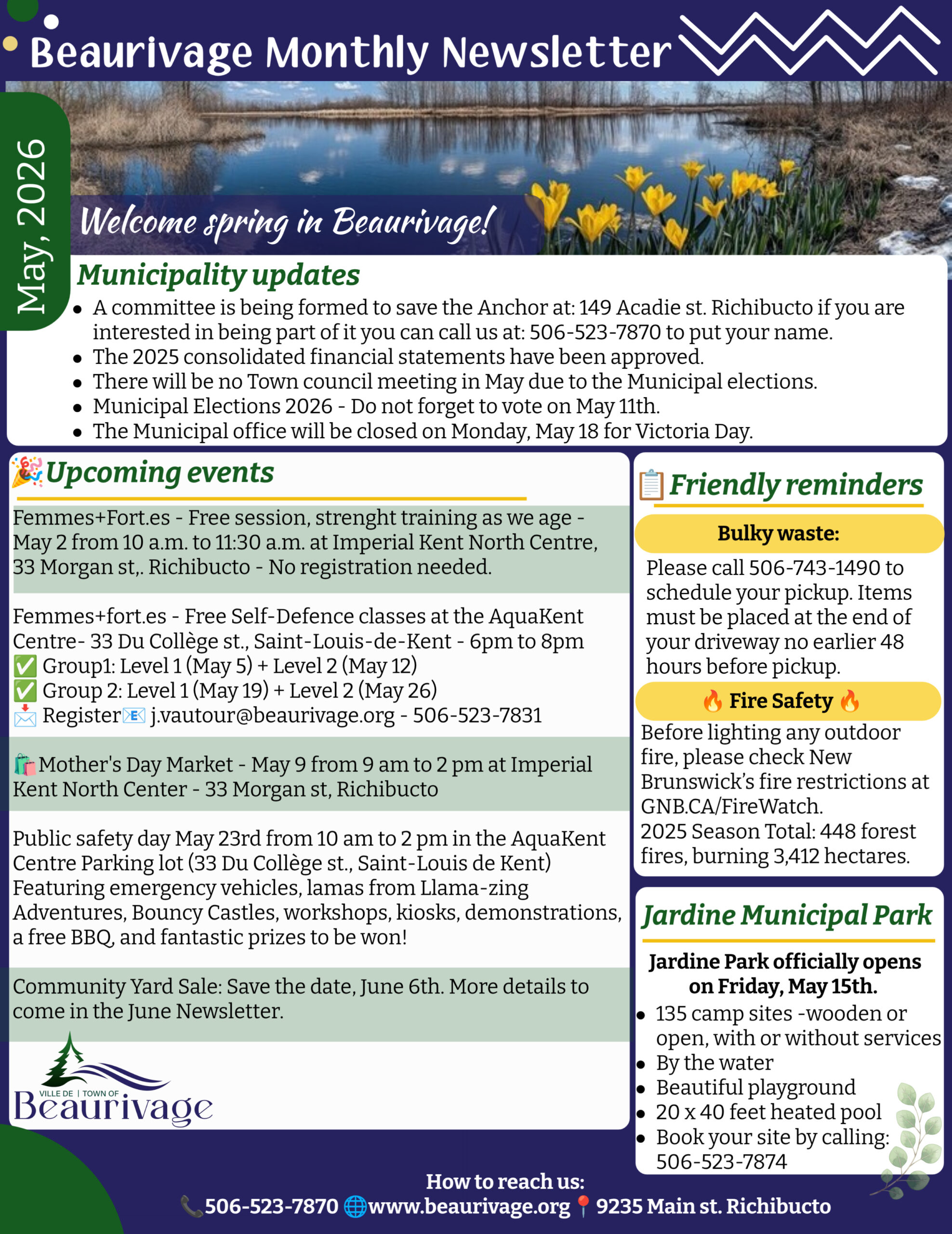 The next Beaurivage Council Meeting will be held on Tuesday June 16, 2026 at 7 p.m.